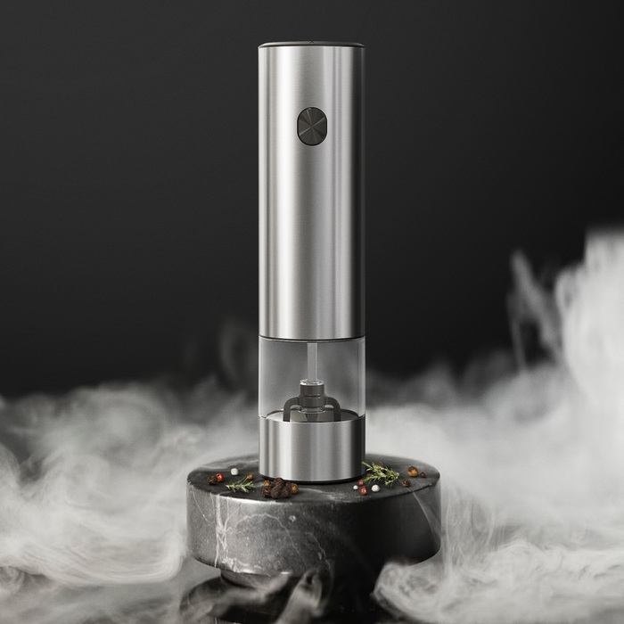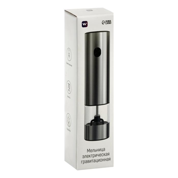 Мельница электрическая Luazon LET-002, металл, от батареек, серебристая