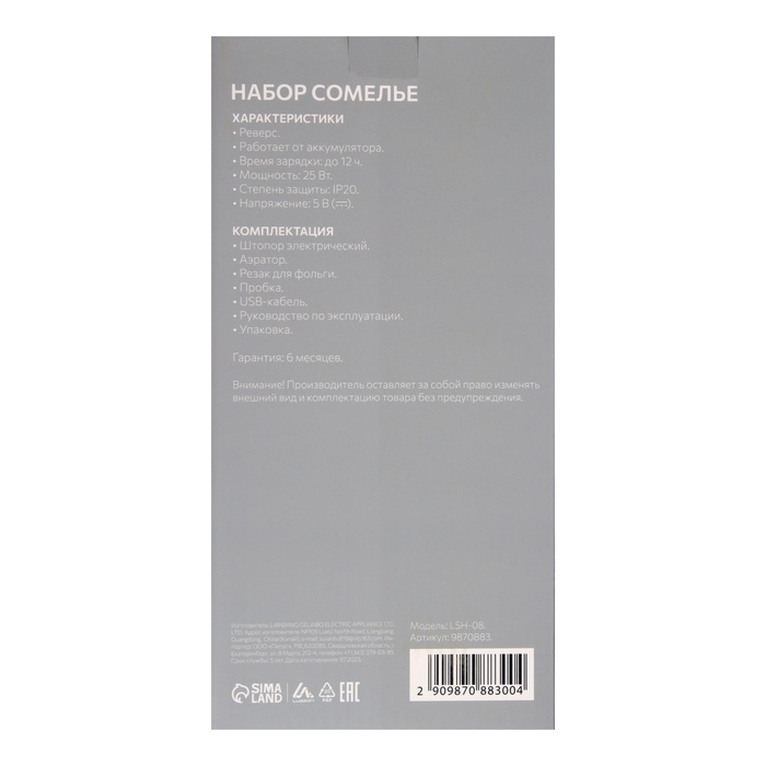 Набор сомелье Luazon LSH-08, 25 Вт, АКБ, аэратор, пробка, резак для фольги