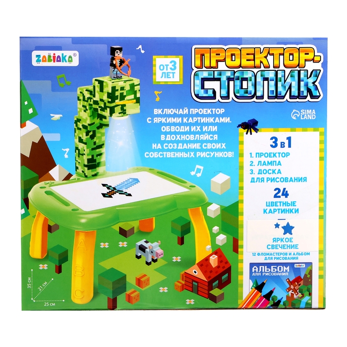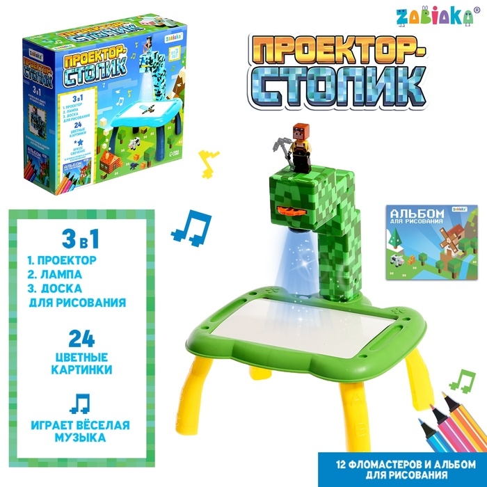Набор «Проектор-столик» подходит для творчества и отдыха. Он станет отличной основой для рисования, позволяя вам обводить контуры или создавать свои собственные интерпретации картинок под весёлую мелодию и яркое освещение.