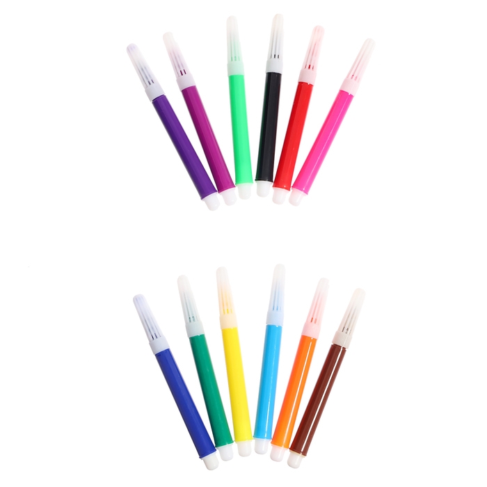 - Набор включает в себя всё необходимое для творчества, отдыха и веселья: 3 слайда (24 цветные картинки), 12 фломастеров и альбом для рисования.