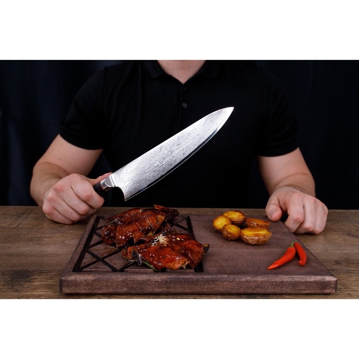 Нож шеф Magistro «Ортего», длина лезвия 24 см, дамасская сталь AUS-10