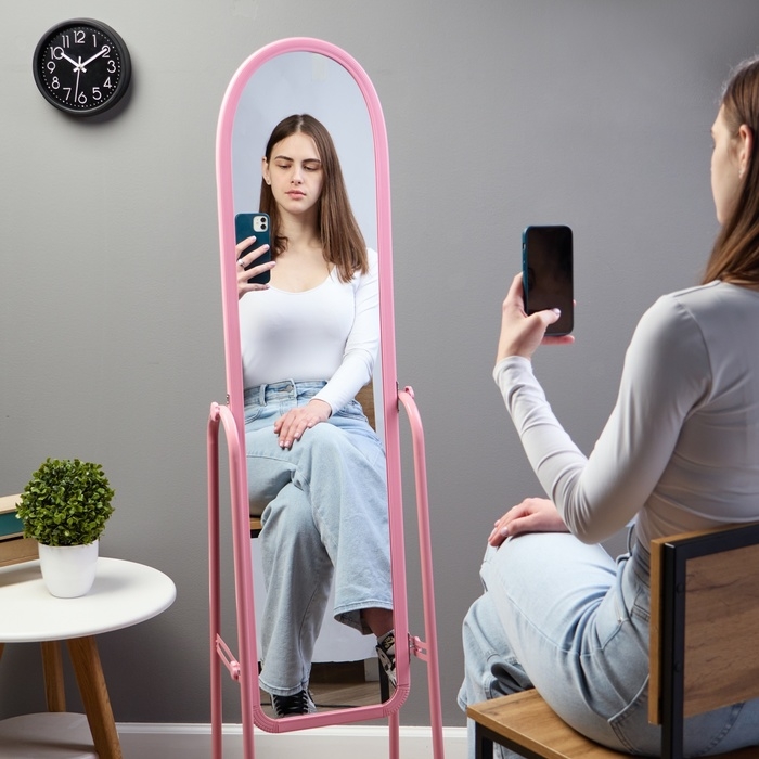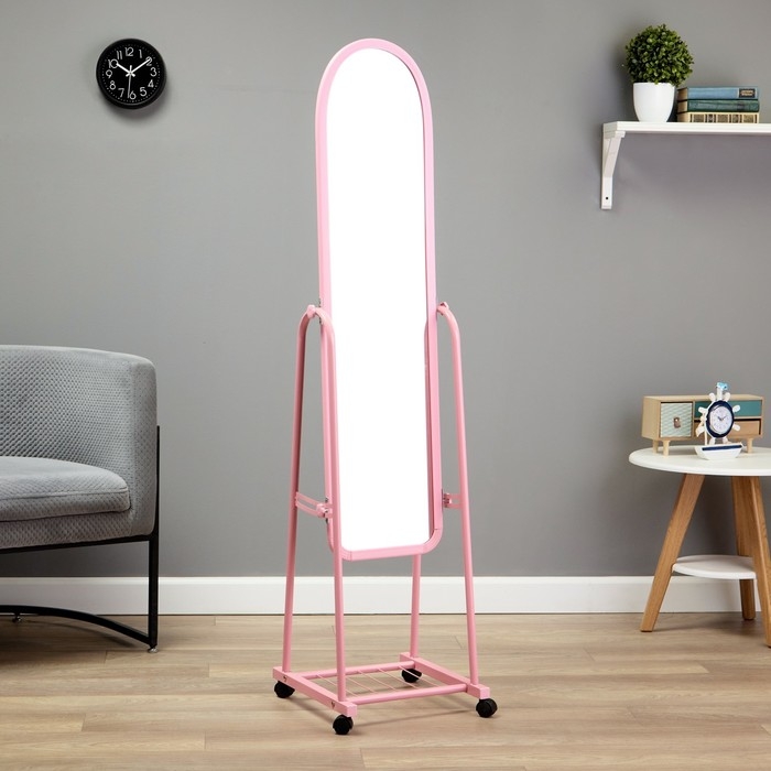 Зеркало напольное "Basic", на колёсиках, 31 х 160см, розовое