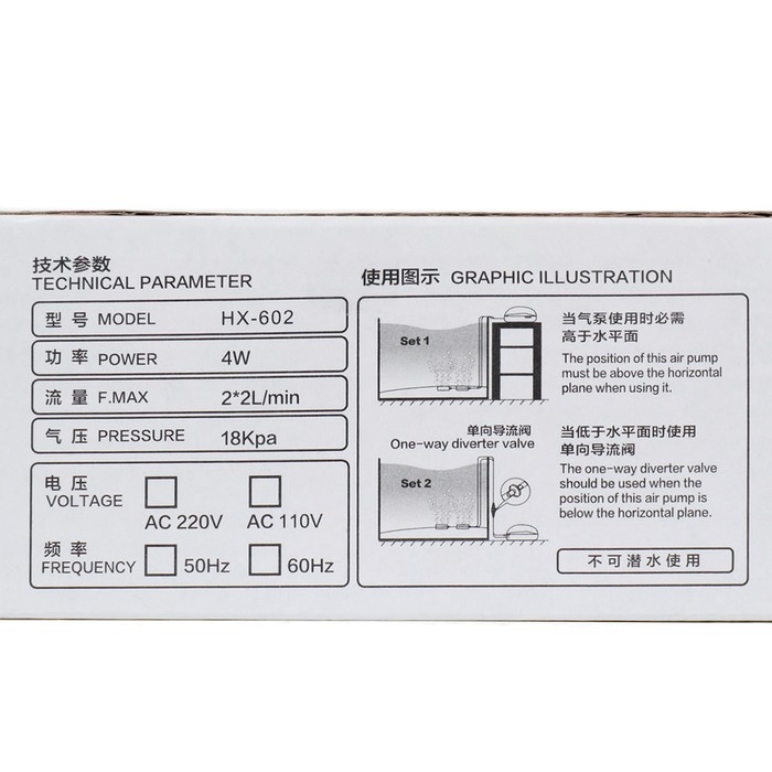 Этот компактный и бесшумный компрессор станет настоящей находкой для любого аквариумиста. Sea Star HX-602 обеспечивает стабильную подачу воздуха, что способствует поддержанию здорового микроклимата в аквариуме. С мощностью в 4 Вт и производительностью 4 литра в минуту (2 канала по 2 л/мин), он идеально подходит для аквариумов объемом до 400 литров.