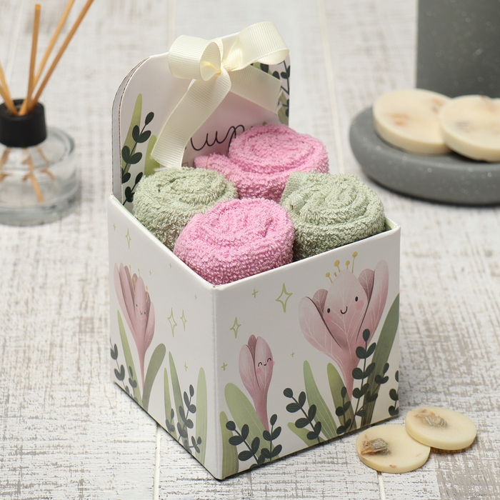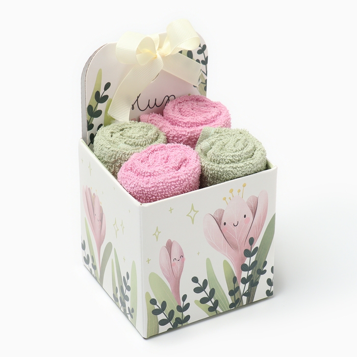 Набор махровых салфеток Этель "Цветы" 30х30 см - 4 шт, 100% хлопок, 340 гр/м2