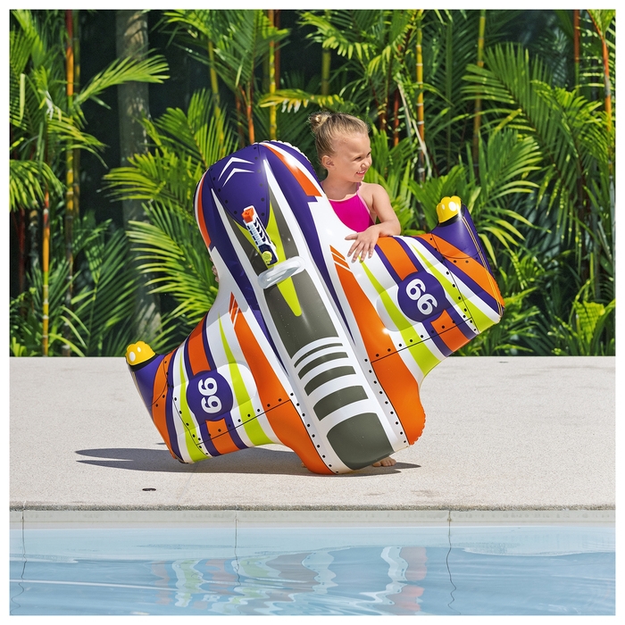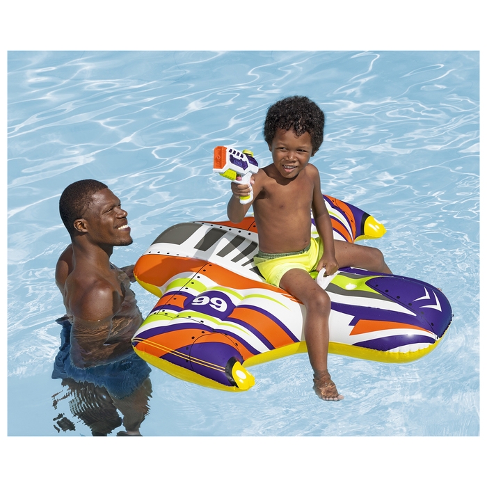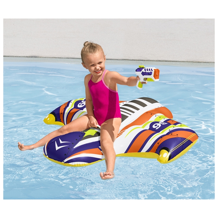 Надувной плотик подойдёт для купания в бассейне и в открытых водоёмах. Изделие оснащено ручкой и имеет яркий дизайн. В комплект входит водный пистолет, чтобы сделать купание ещё веселее.