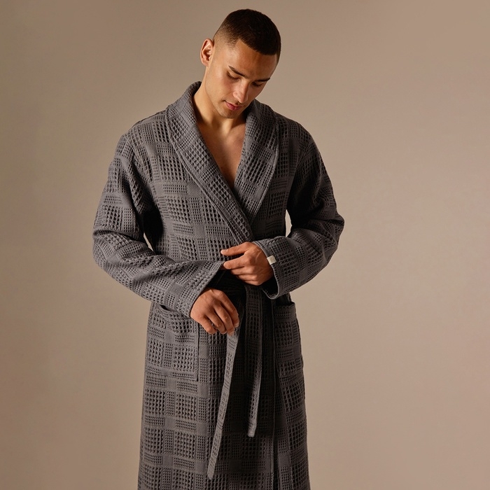 Халат вафельный мужской SL HOME: Chess "Гри Сандре", размер S, 100% хлопок, 340 г/м2