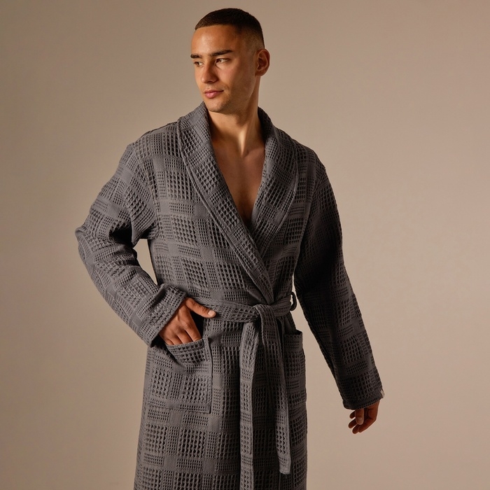 Халат вафельный мужской SL HOME: Chess "Гри Сандре", размер L, 100% хлопок, 340 г/м2