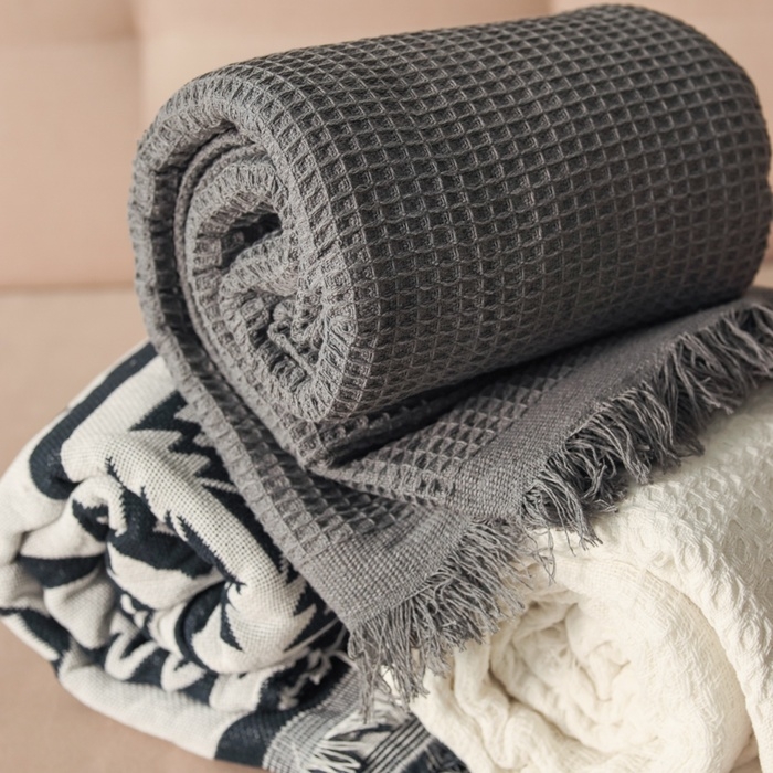 Плед Этель Waffle 130*180см , цв.темно-серый,80%хлопок, 20% п/э