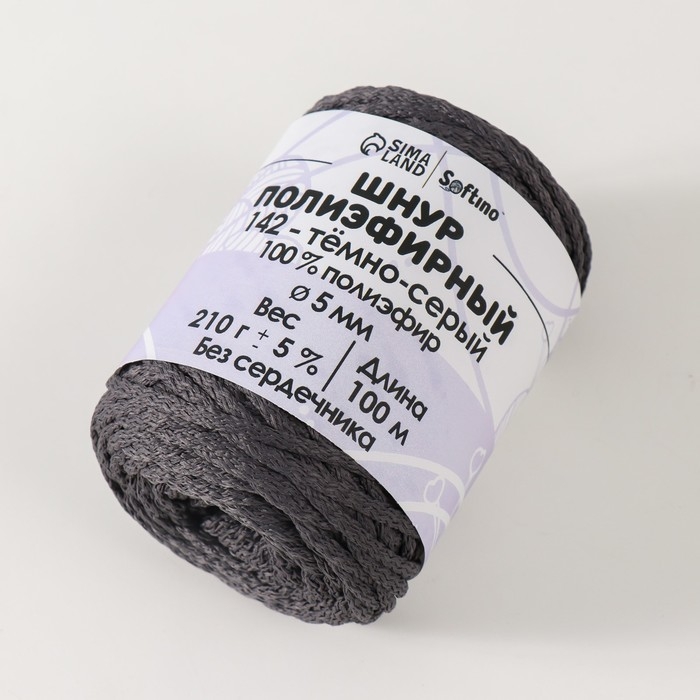 Шнур полиэфирный без сердечника 5 мм 100м/210г (+/- 5%) темно-серый -142