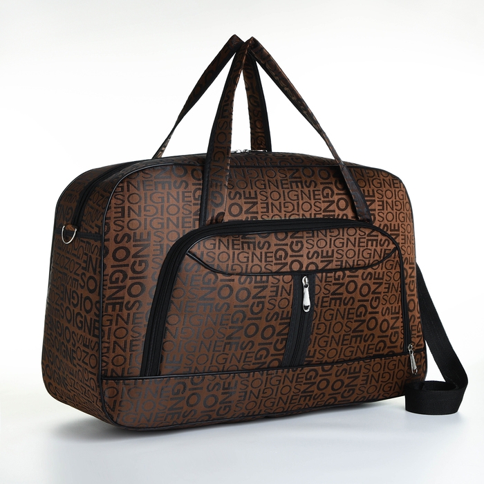 Сумка дорожная на молнии, наружный карман, длинный ремень, цвет коричневый