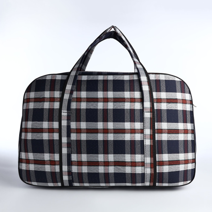 Сумка дорожная на молнии, наружный карман, длинный ремень, цвет синий/белый