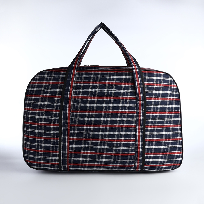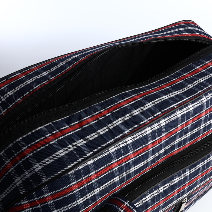 Сумка дорожная на молнии, наружный карман, длинный ремень, цвет синий/красный