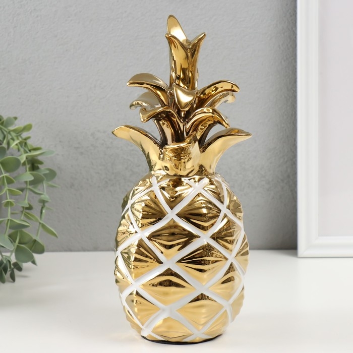 Сувенир керамика "Ананас" белый с золотом 11х11х26 см