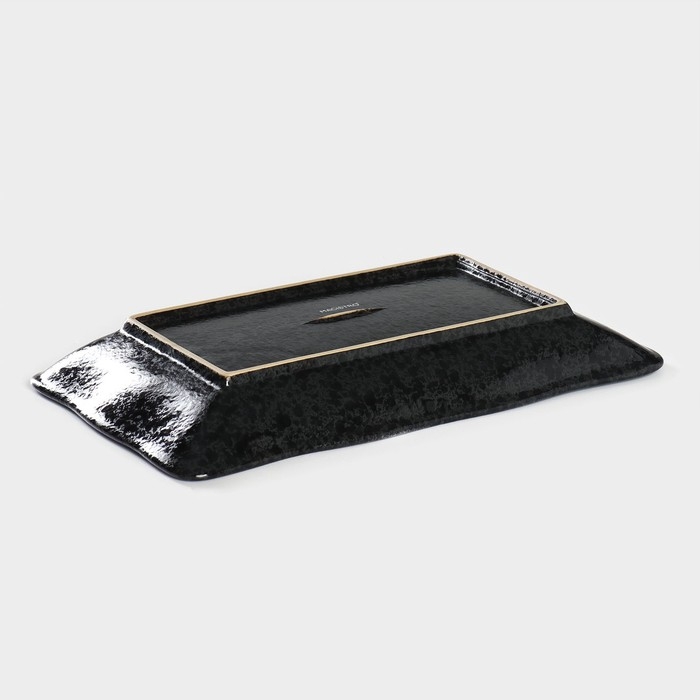 Блюдо сервировочное с соусником фарфоровое Magistro «Ночной дождь», 31×18,5×4 см, цвет чёрный