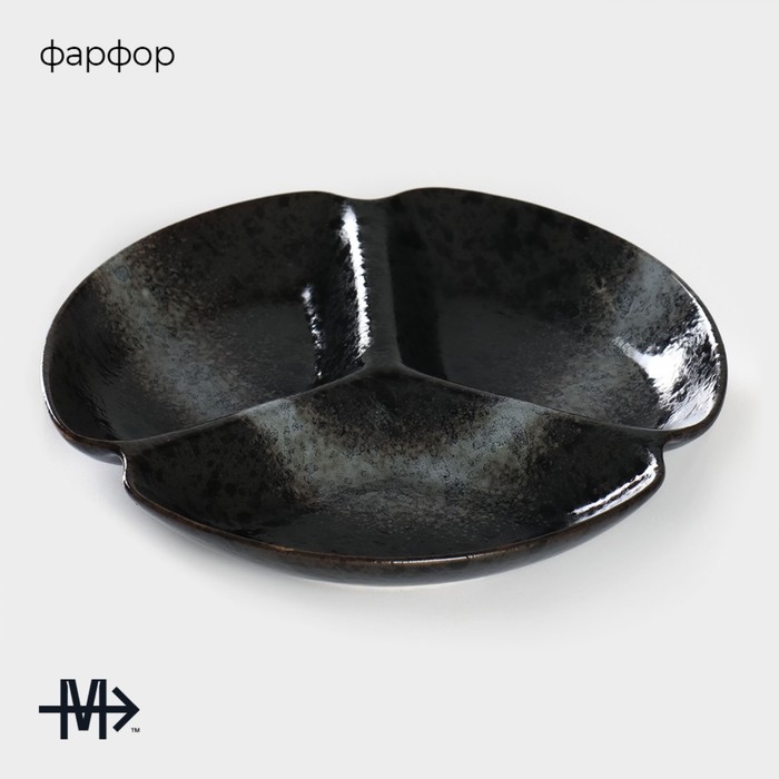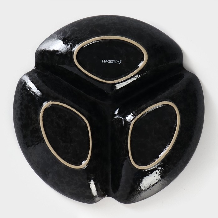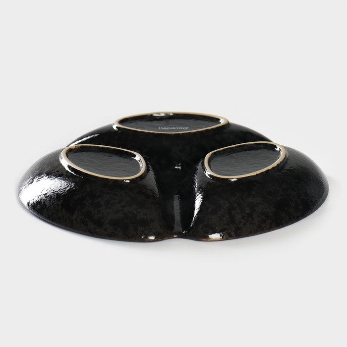 Менажница фарфоровая 3 ячейки Magistro «Ночной дождь», 20,5×3 см, цвет чёрный
