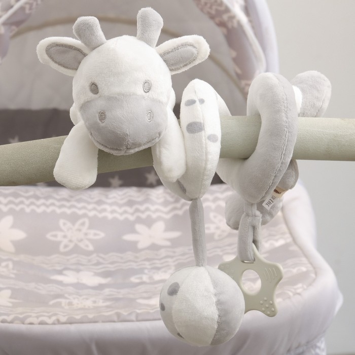 Мягкую и гибкую спиралевидную растяжку можно легко обмотать вокруг бортика кроватки, ручки автокресла, бампера коляски, разместить на шезлонг.