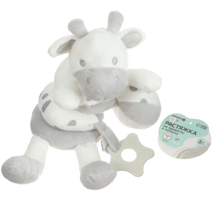 Растяжка - спираль с игрушками дуга на коляску / кроватку для малышей «Коровка», с пищалкой, прорез., Крошка Я