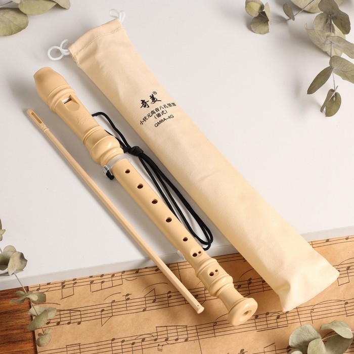 Блокфлейта Music Life, 8 отверстий, белый чехол, шомпол, 30 см