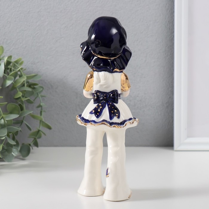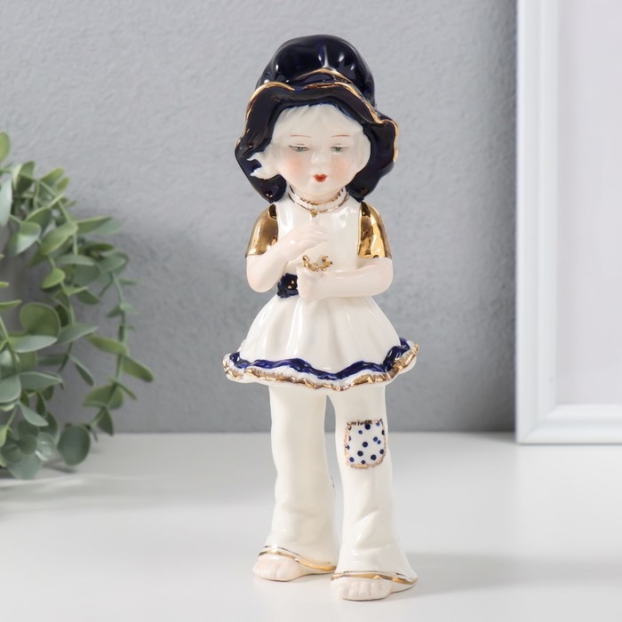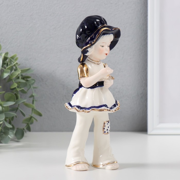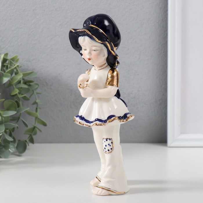 Сувенир керамика "Малышка в шляпке - гадание на ромашке" кобальт 7,5х7,5х20 см