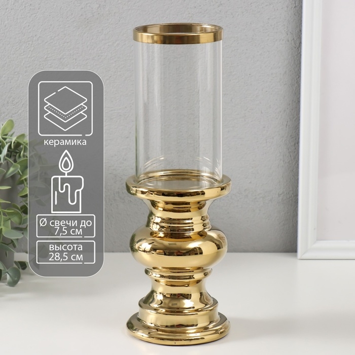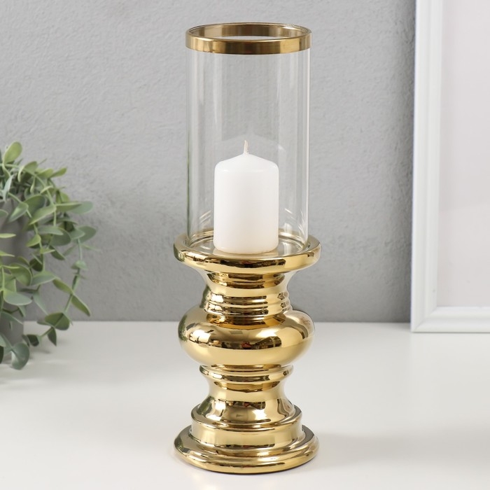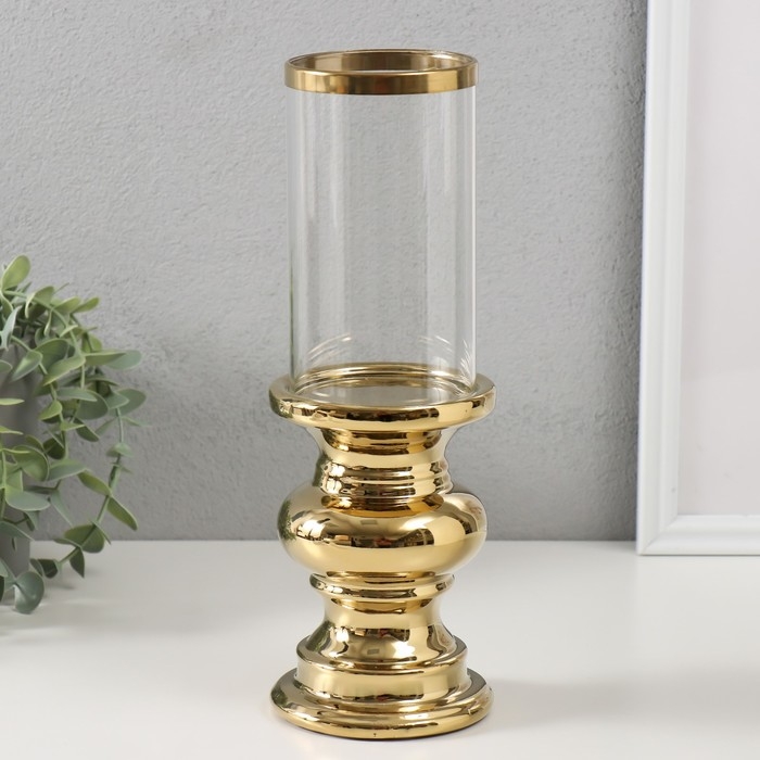 Подсвечник керамика, стекло на 1 свечу "Грация" d=7,5 см золото 10х10х28,5 см