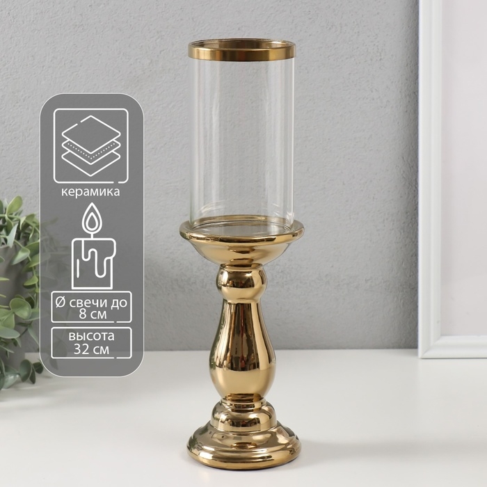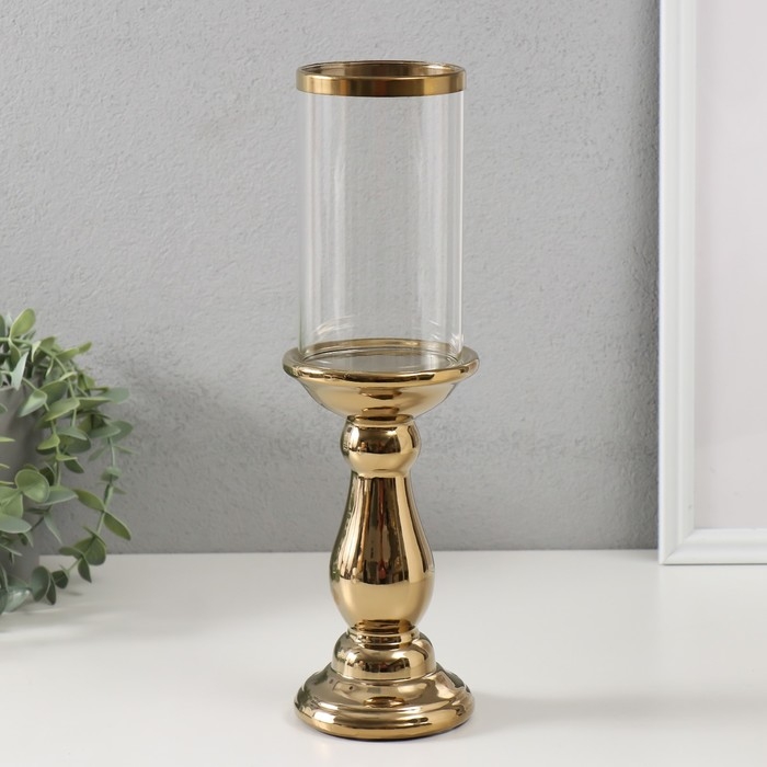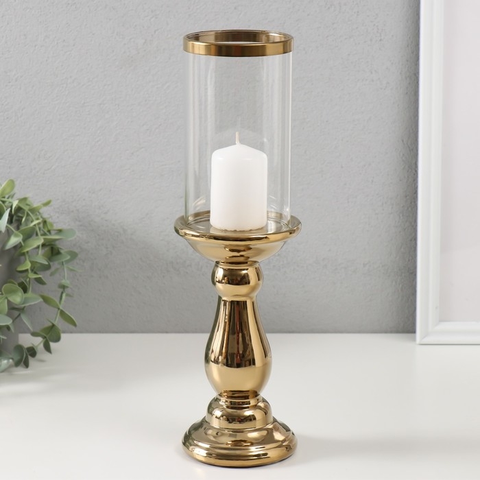 Подсвечник керамика, стекло на 1 свечу "Магистр" d=8 см золото 9,5х9,5х32 см