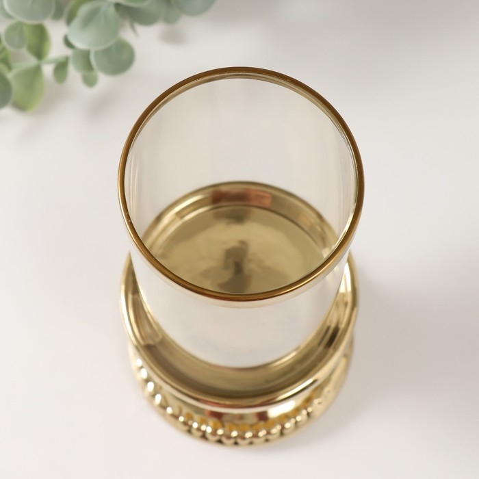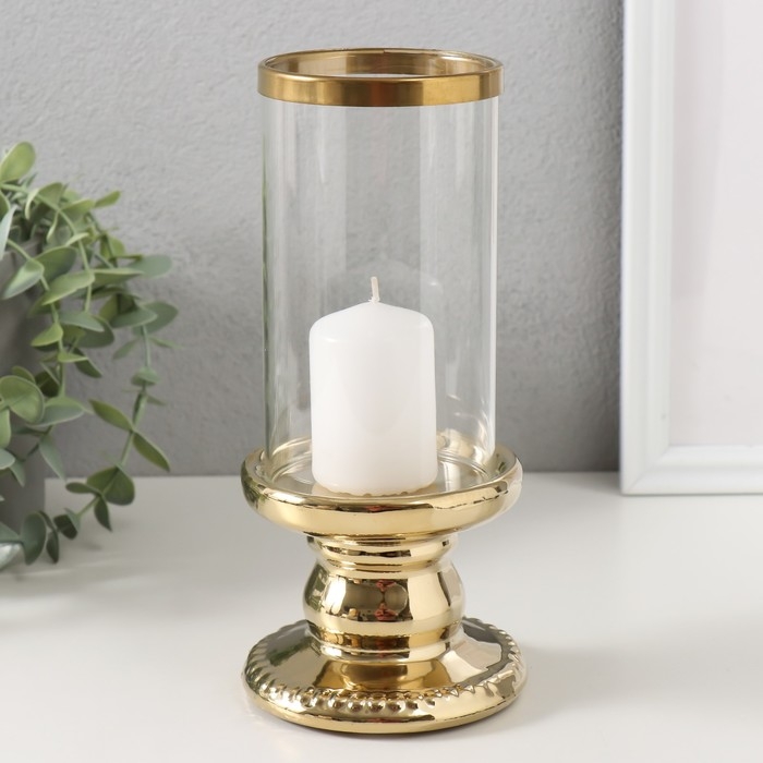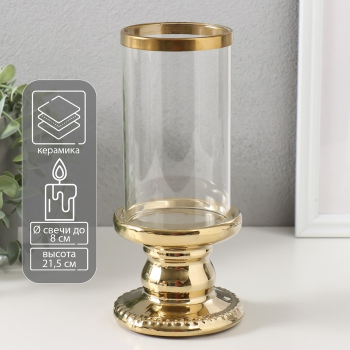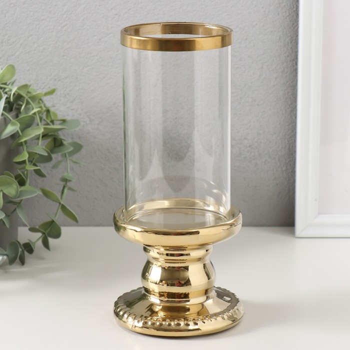 Подсвечник керамика, стекло на 1 свечу "Веллис" d=8 см золото 10х10х21,5 см