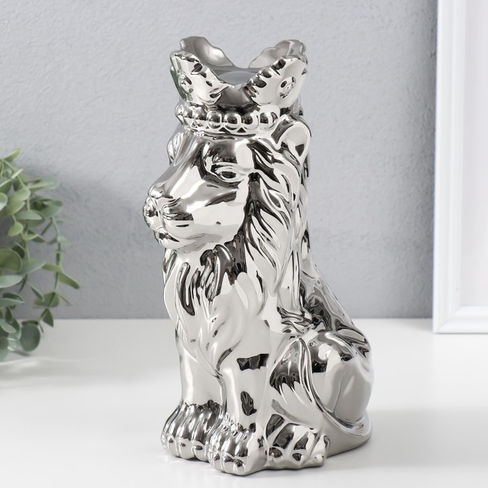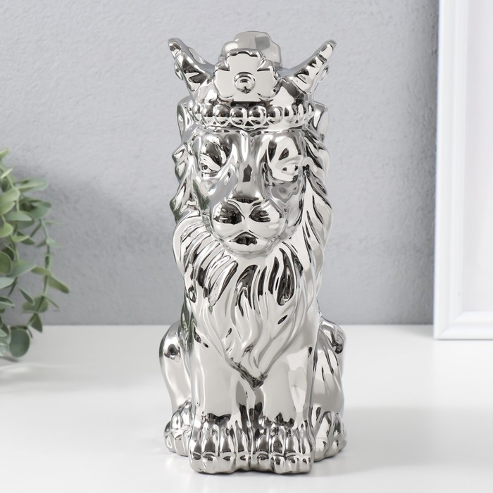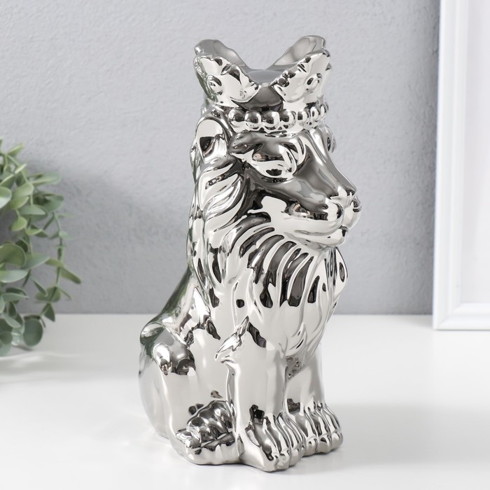 Сувенир керамика "Лев в короне" серебро 17х12х26 см
