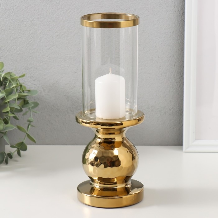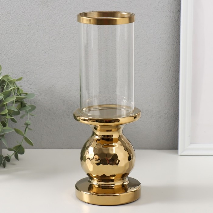 Подсвечник керамика, стекло на 1 свечу "Нуар" d=8 см золото 10х10х27 см