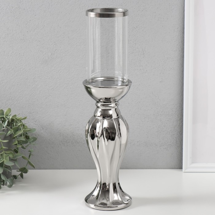 Подсвечник керамика, стекло на 1 свечу "Версаль" d=7,5 см серебро 9,5х9,5х38,5 см