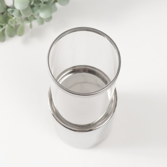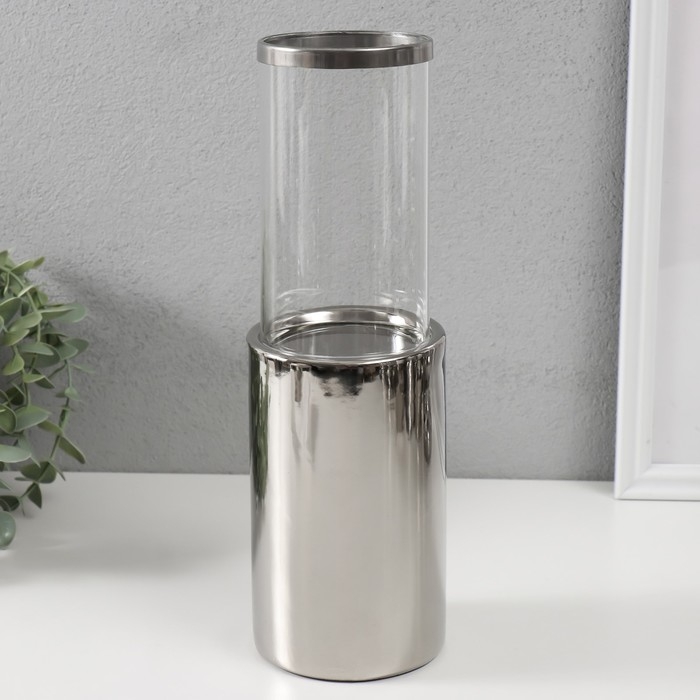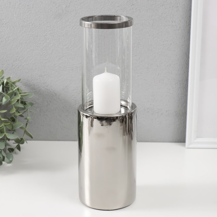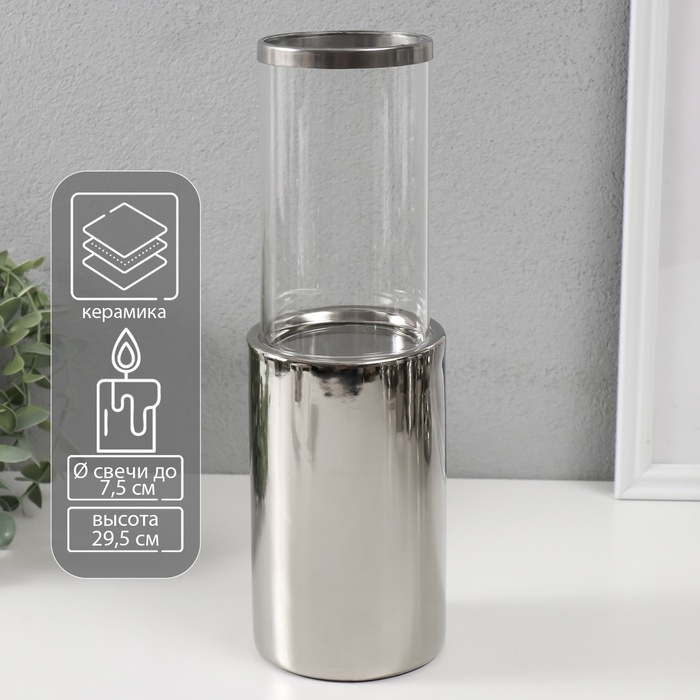 Подсвечник керамика, стекло на 1 свечу "Хром" d=7,5 см серебро 9,2х9,2х29,5 см