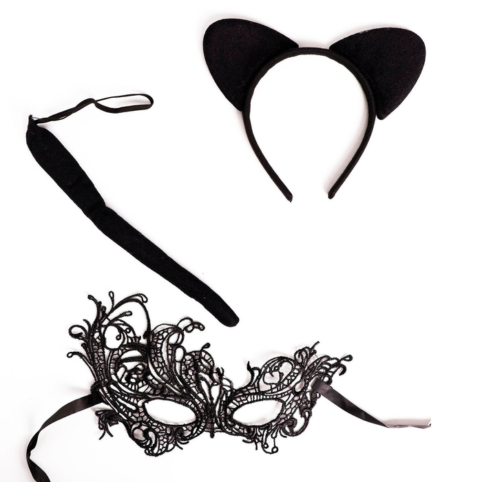 Карнавальный костюм взрослый «Женщина - кошка», ободок, хвостик, маска