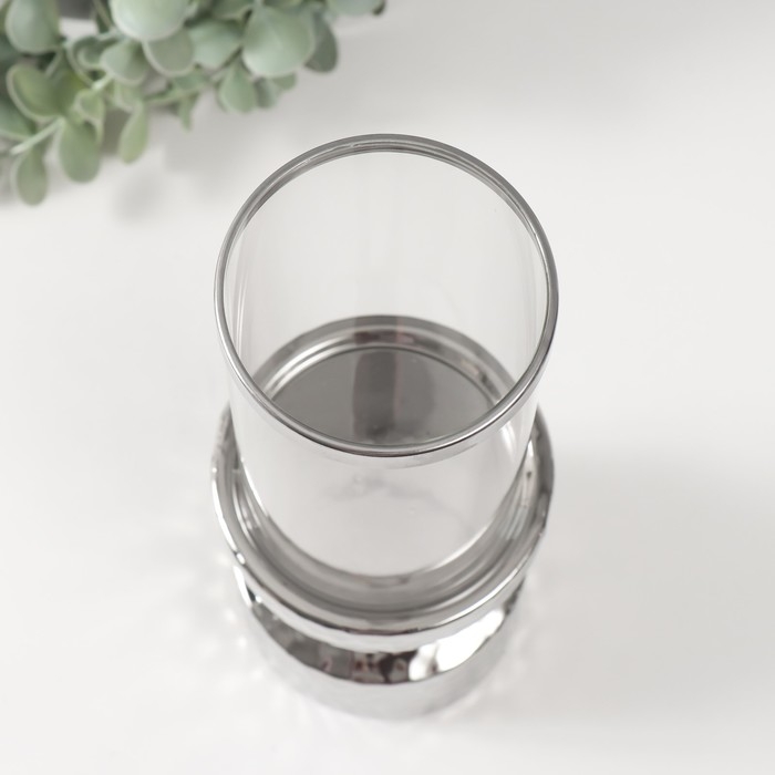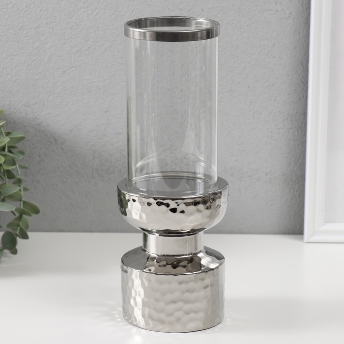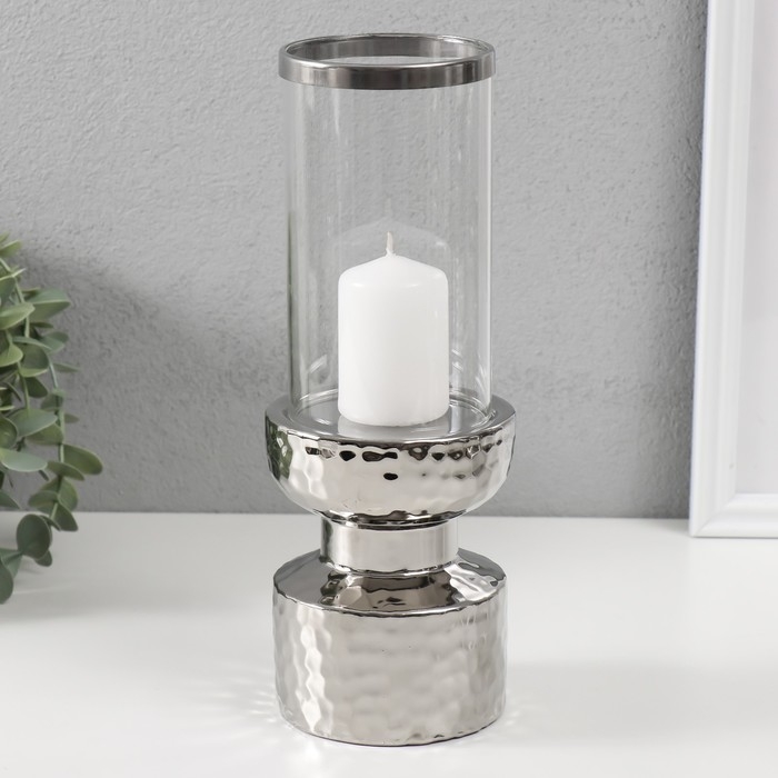 Подсвечник керамика, стекло на 1 свечу "Омут" d=8 см серебро 9,5х9,5х26 см