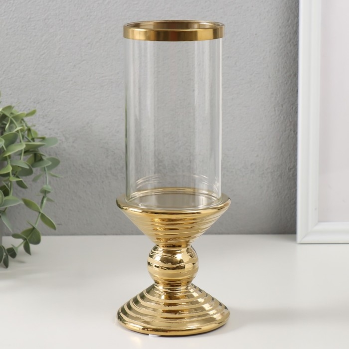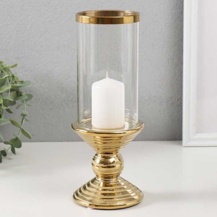 Подсвечник керамика, стекло на 1 свечу "Иллюзия. Зебра" d=7,5 см золото 9х9х24 см