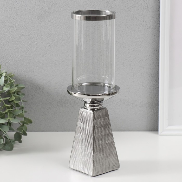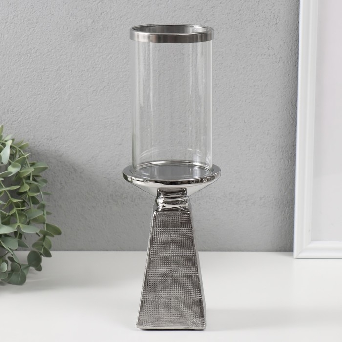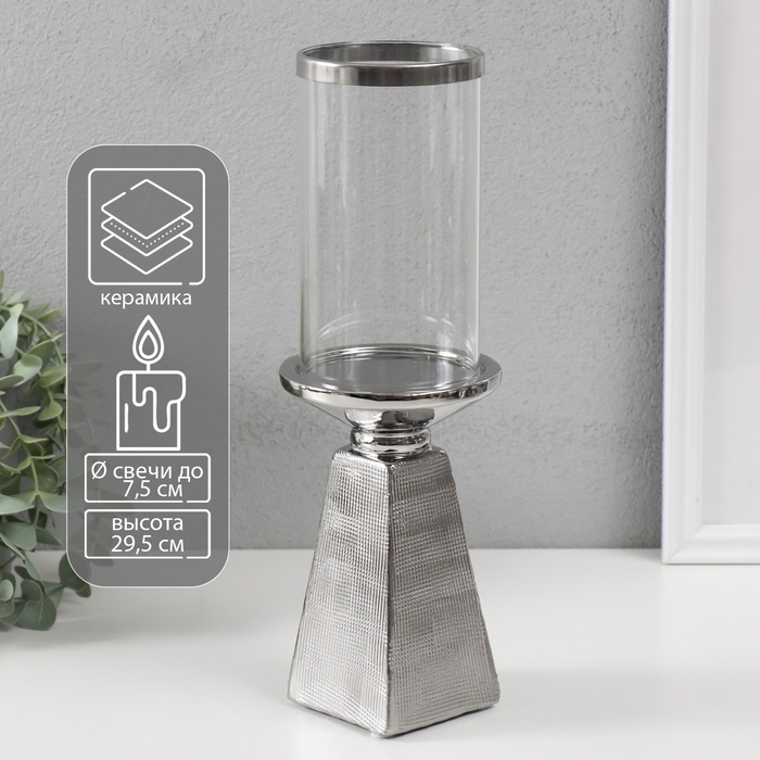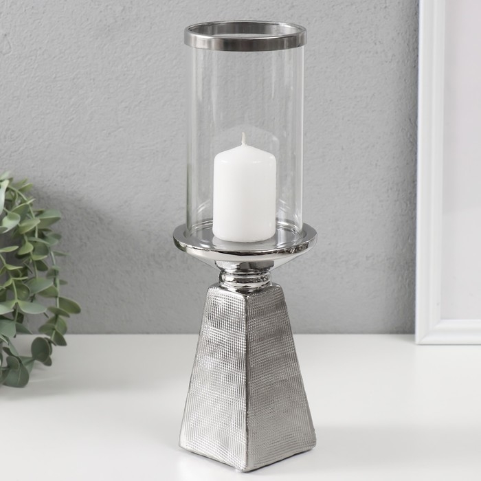 Подсвечник керамика, стекло на 1 свечу "Буэно" d=7,5 см серебро 9,5х9,5х29,5 см