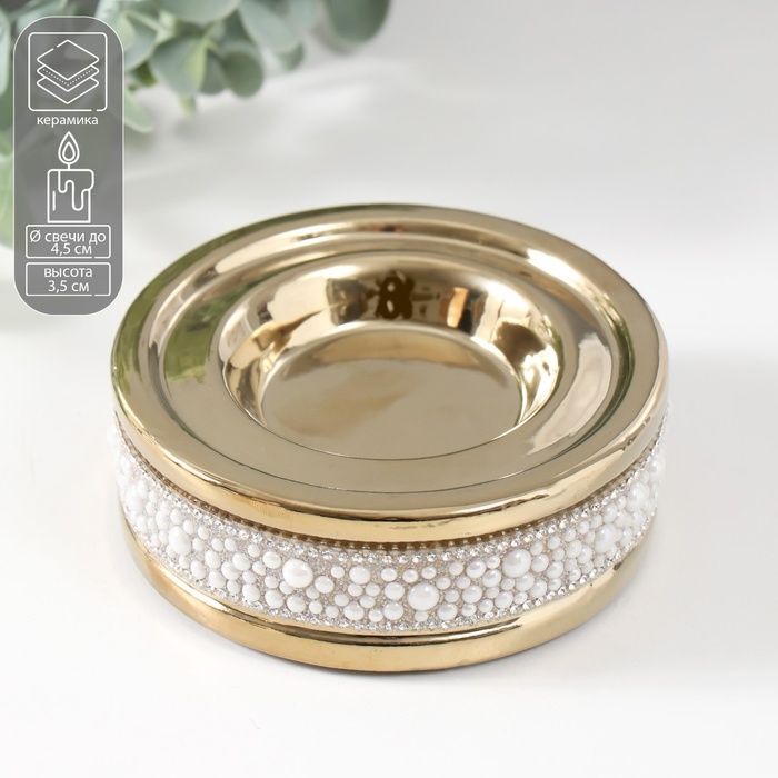 Подсвечник керамика на 1 свечу "Ожерелье" d=4,5 см золото 10х10х3,5 см