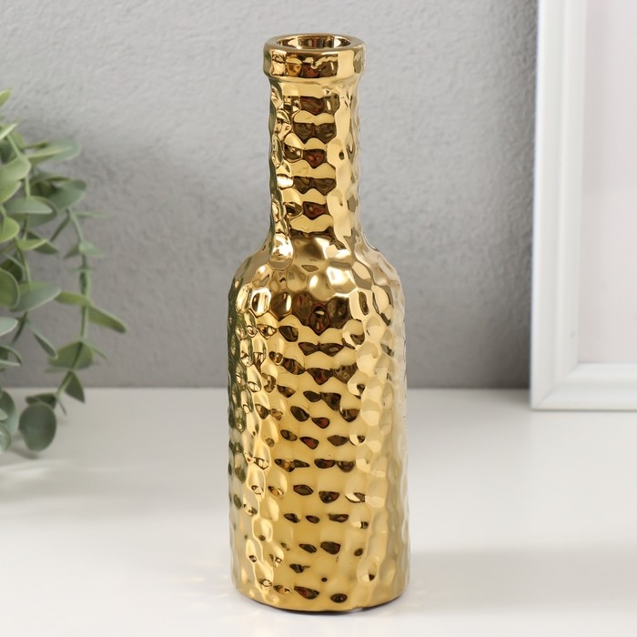 Подсвечник керамика на 1 свечу "Бутыль" d=1,5 см золото 6х6х20 см
