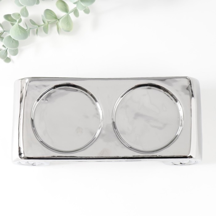 Подсвечник керамика на 2 свечи "Греция" d=7,5 см серебро 22,5х10х7 см