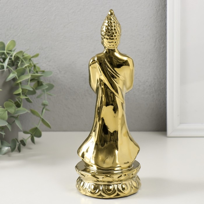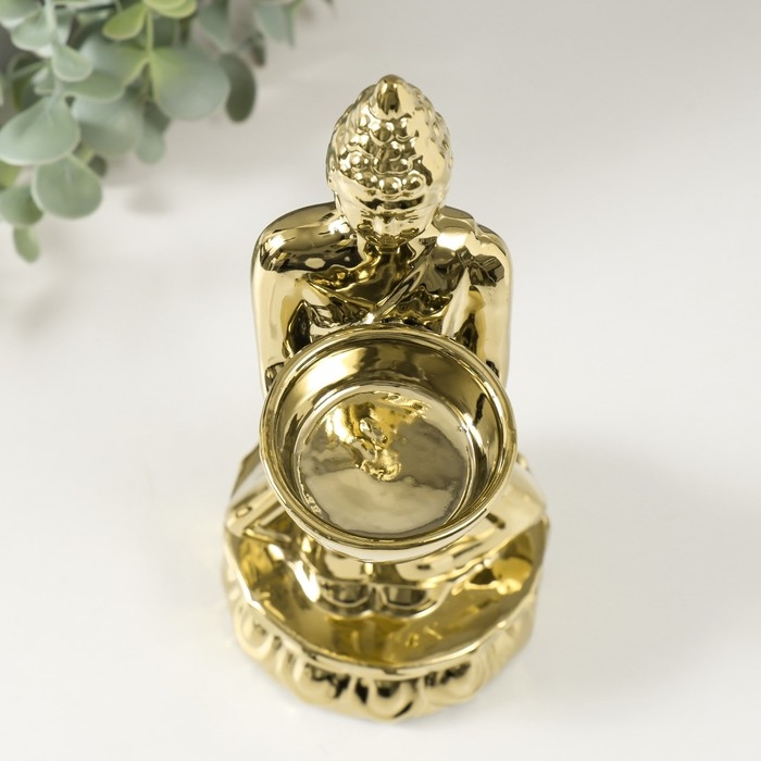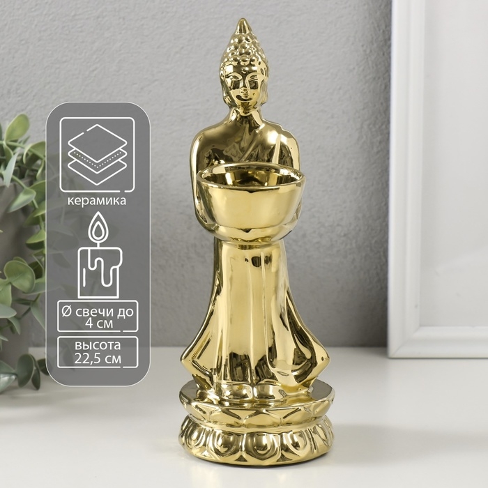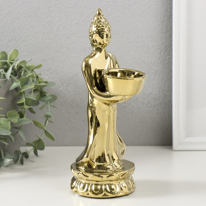 Подсвечник керамика на 1 свечу "Будда" d=4 см золото 8х11х22,5 см