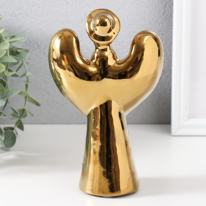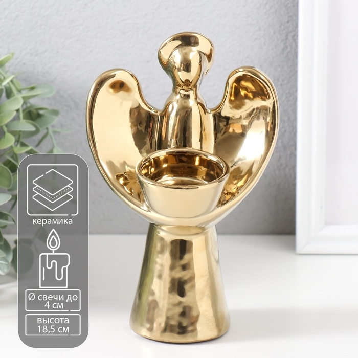 Подсвечник керамика на 1 свечу "Ангел с нимбом" d=4 см золото 11,5х10х18,5 см