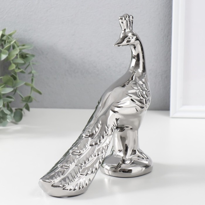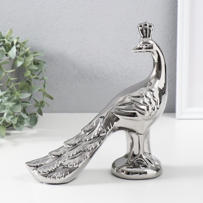 Сувенир керамика "Павлин" серебро 20,5х7х21,5 см