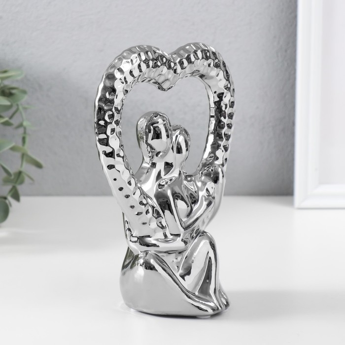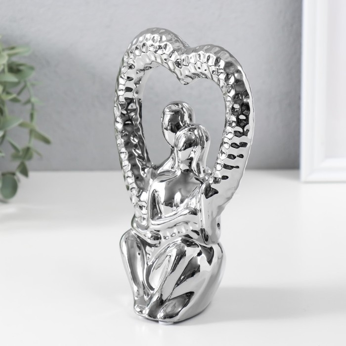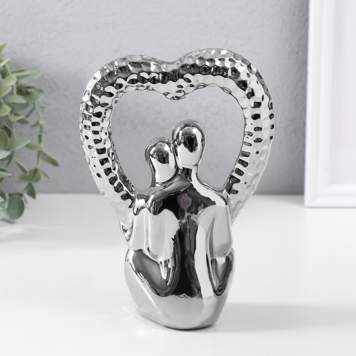 Сувенир керамика "Абстракция. Влюблённые с сердцем" серебро 13х7х18,5 см