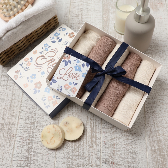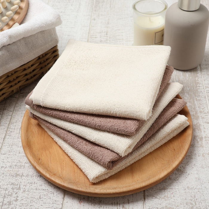 Набор махровых салфеток "Голубые цветы" 30х30 см -5шт, 100% хл, 340гр/м2