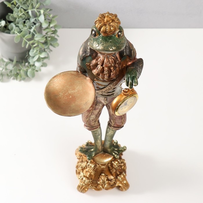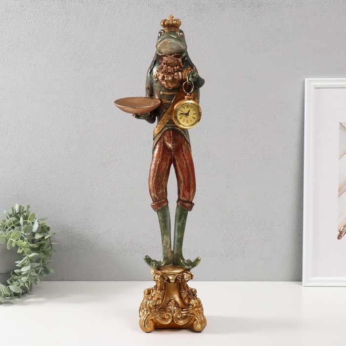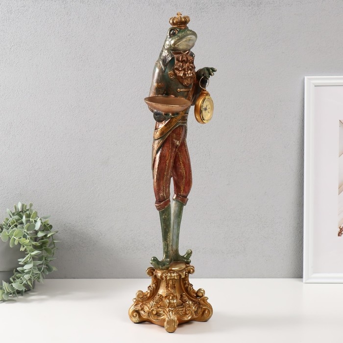 Подсвечник полистоун с часами "Лягуха в короне" 17х14,5х57,5 см