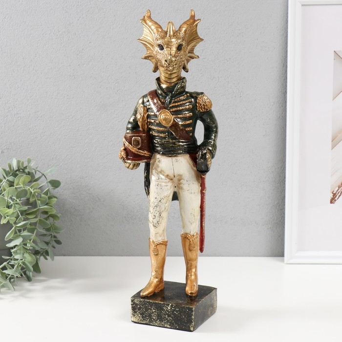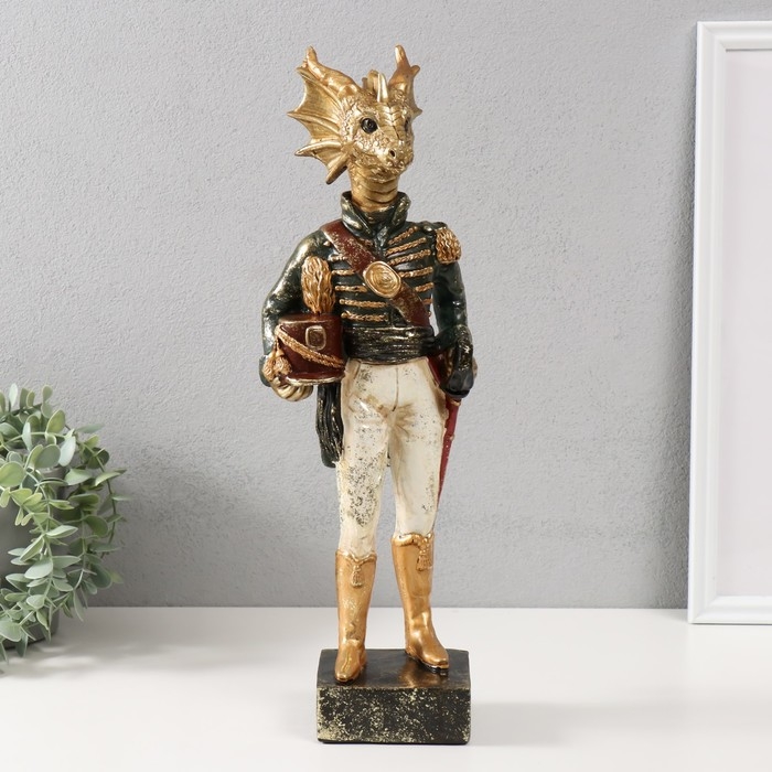 Сувенир полистоун "Золотистый дракон-генерал" 9х14х42,5 см