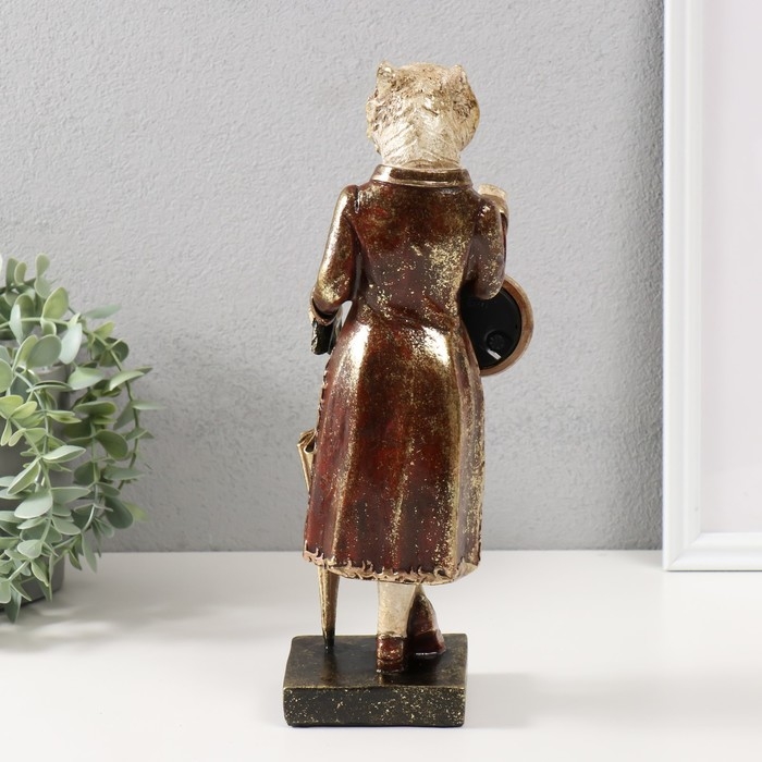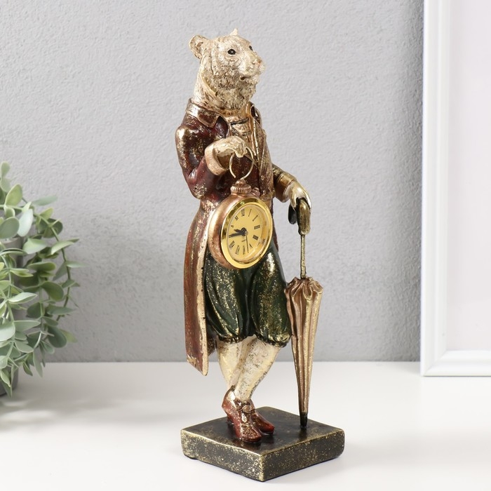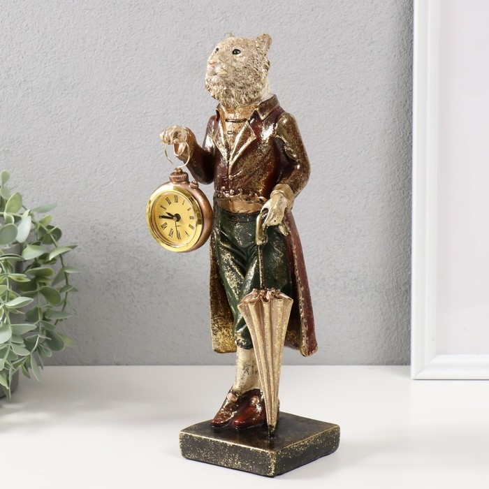 Сувенир полистоун с часами "Белый тигр в камзоле с зонтом" 9,5х9,5х30,5 см