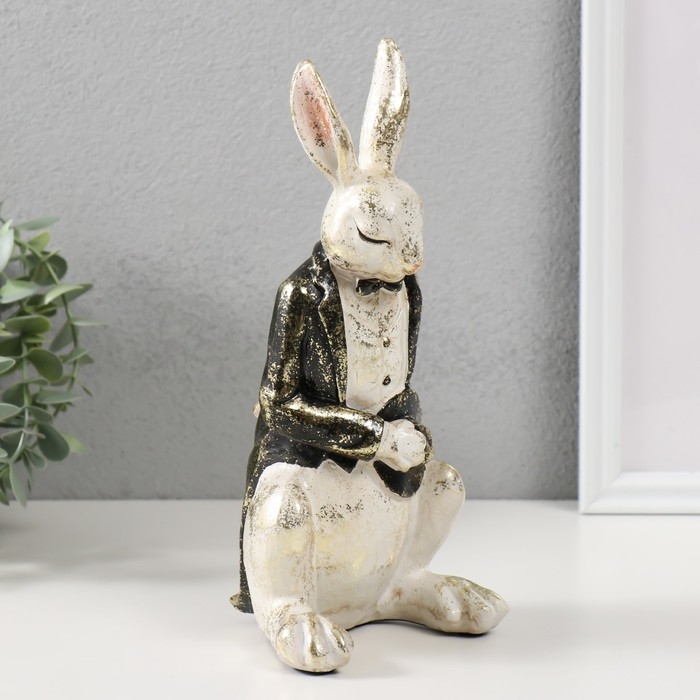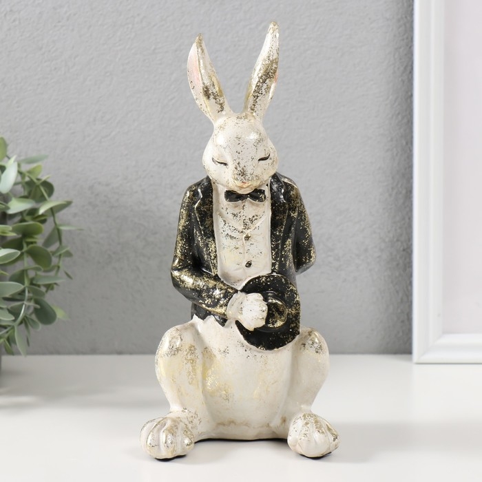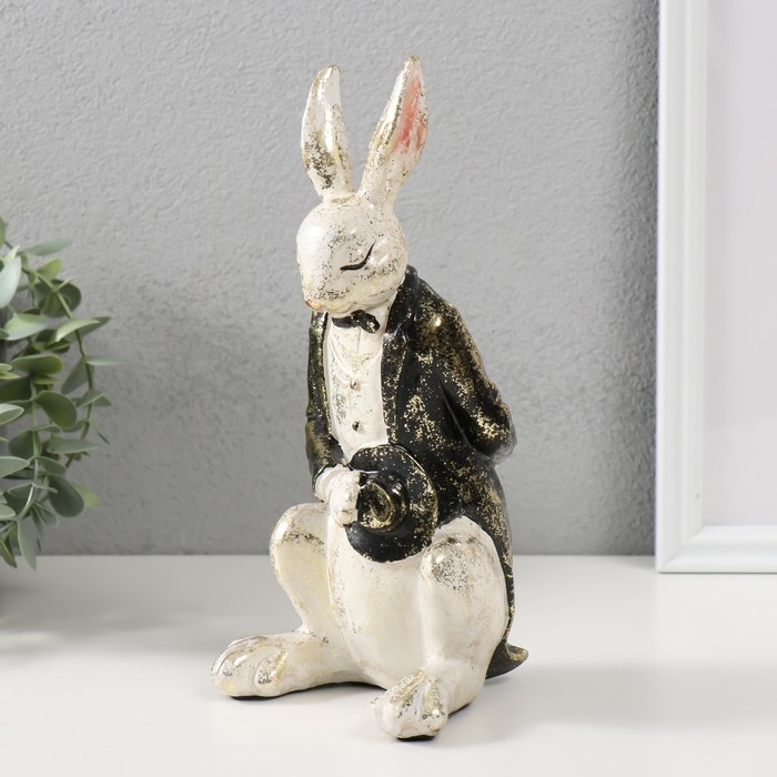 Сувенир полистоун "Белый заяц в смокинге с цилиндром" 11х11х24 см