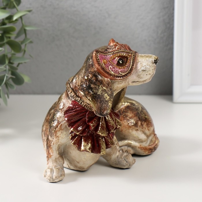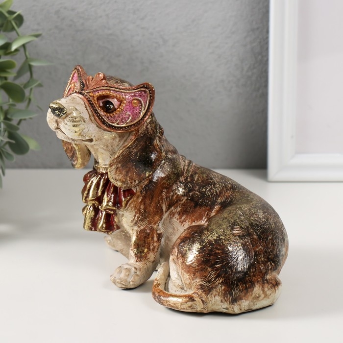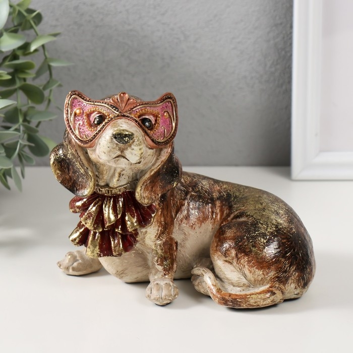 Сувенир полистоун "Собака в жабо и в венецианской маске" 16,5х12,5х13,5 см