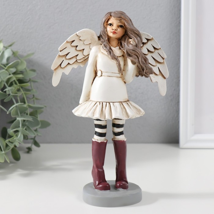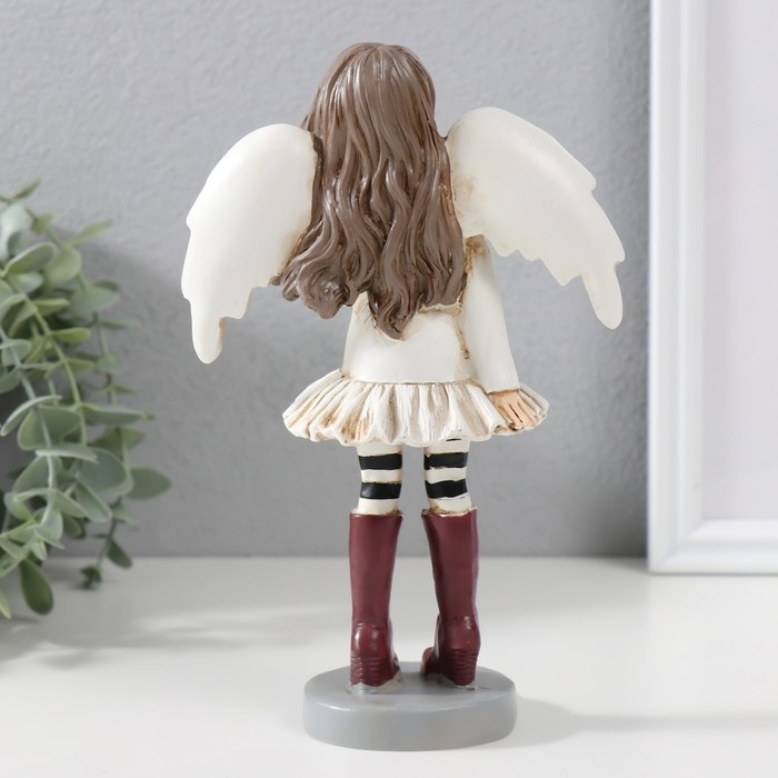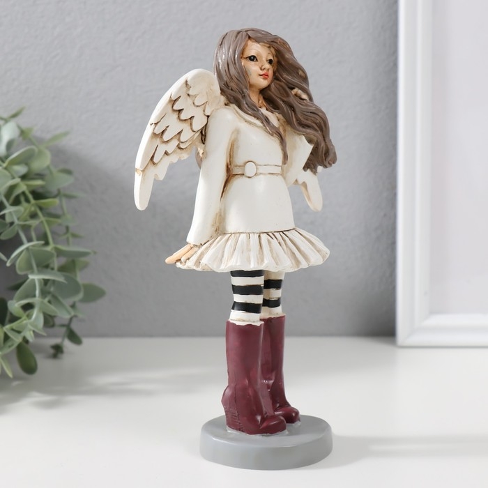 Сувенир полистоун "Девочка-ангел в платье, с полосатыми гетрами и в сапогах" 12х6,5х19,5 см 970350