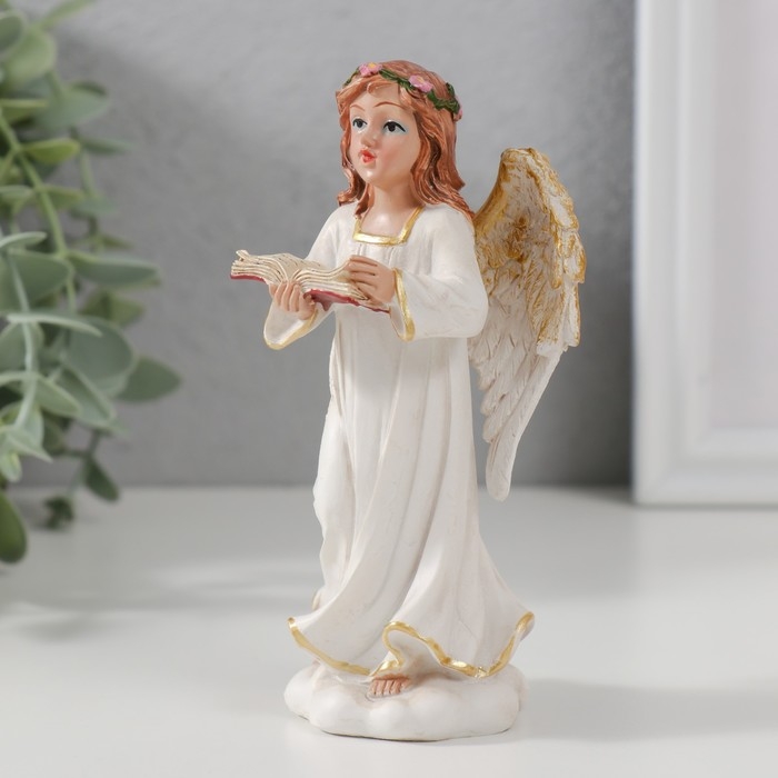 Сувенир полистоун "Ангел-девушка с книгой поёт" 12,5х6,5х5,3 см