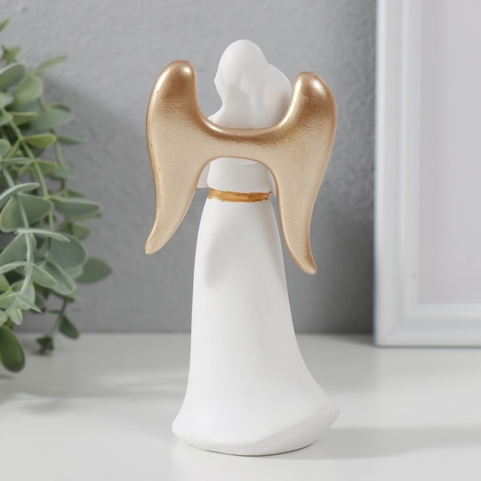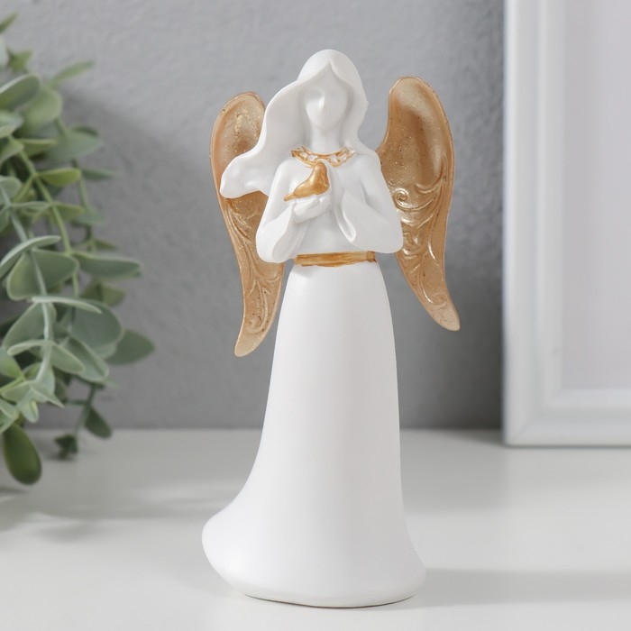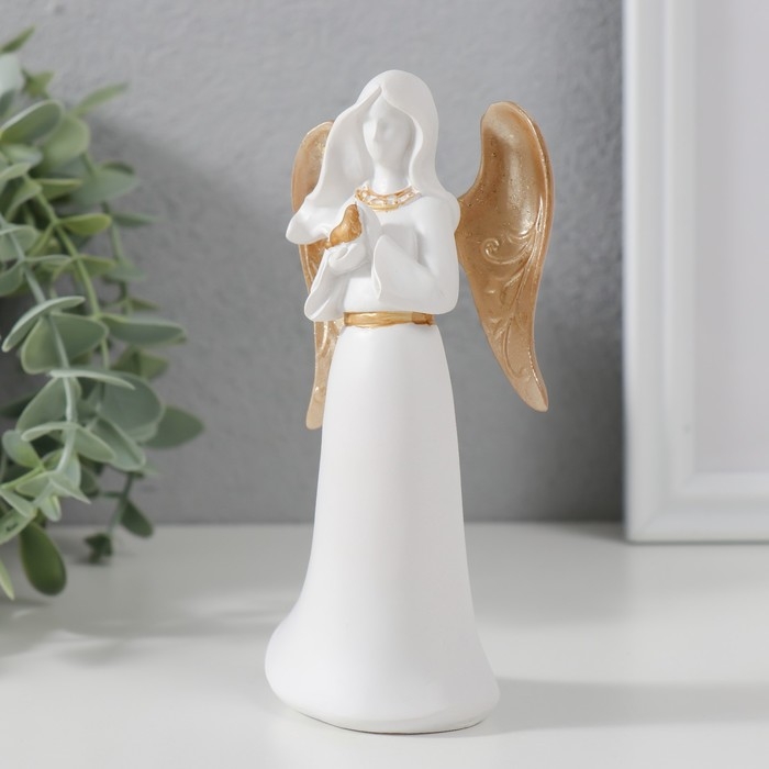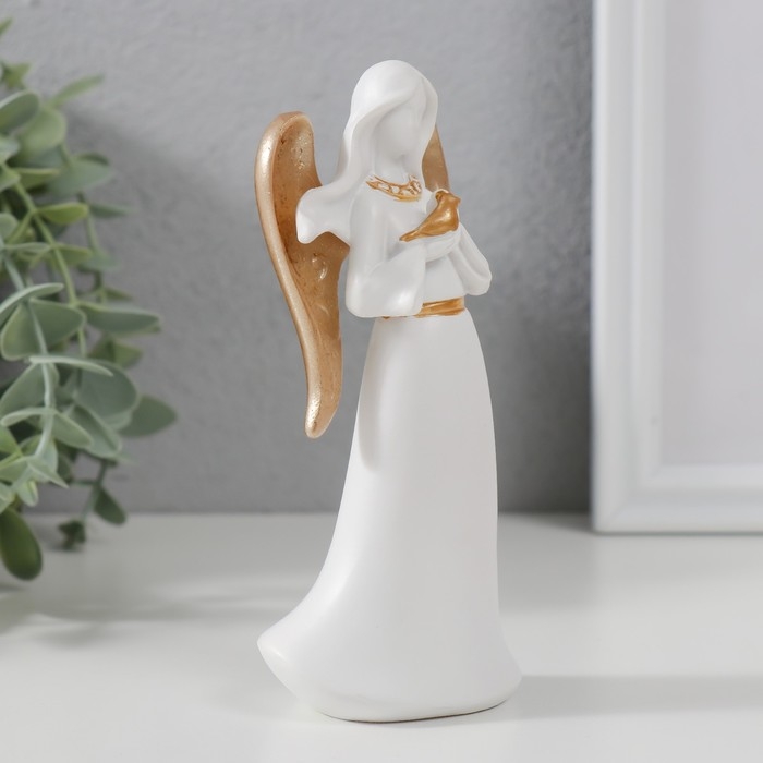 Сувенир полистоун "Ангел-дева с птичкой" белый с золотом 13,5х4,2х6,5 см